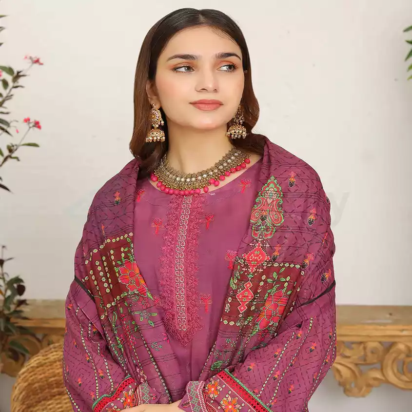 Bin Hameed Digital Printed Embroidered Cut-Work Chicken Kari Bakht Lawn with Voil Dupatta DA-7040