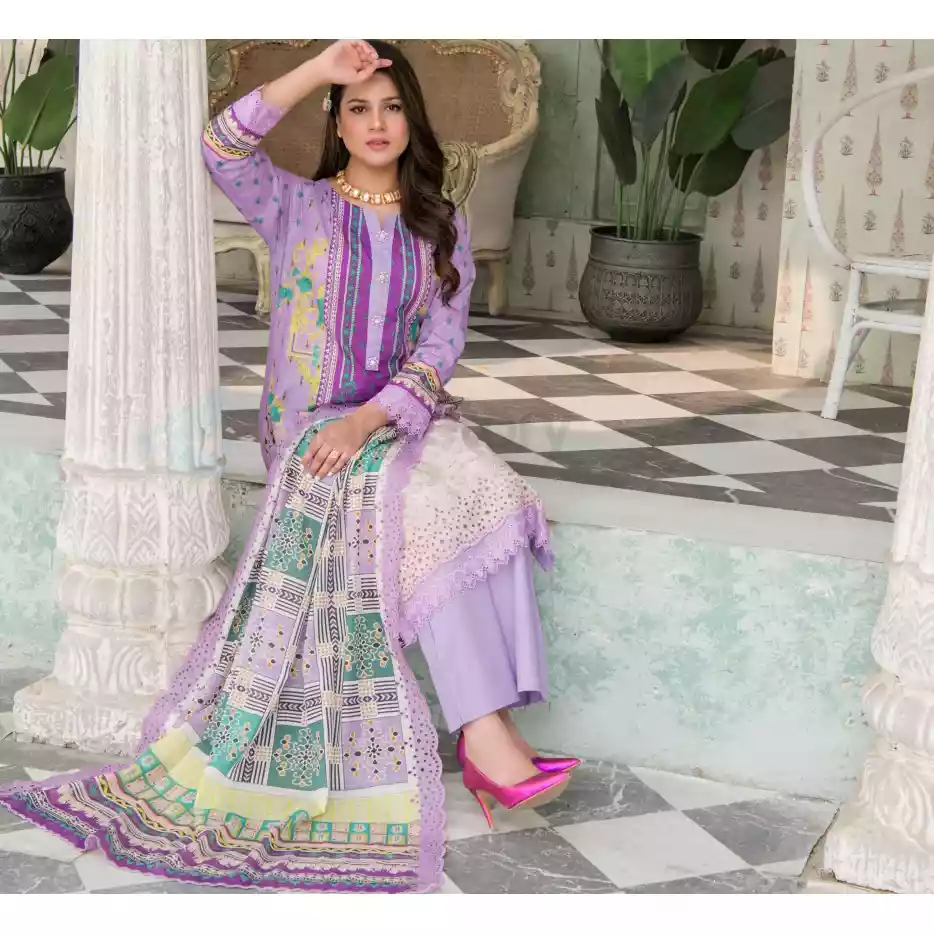 Pakistani Luxury Printed Embroidered Stripe Lawn with Jacquard Voil Dupatta-1023