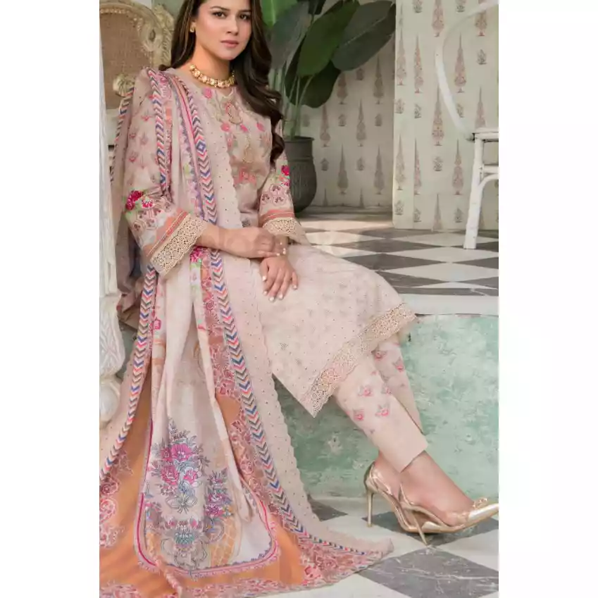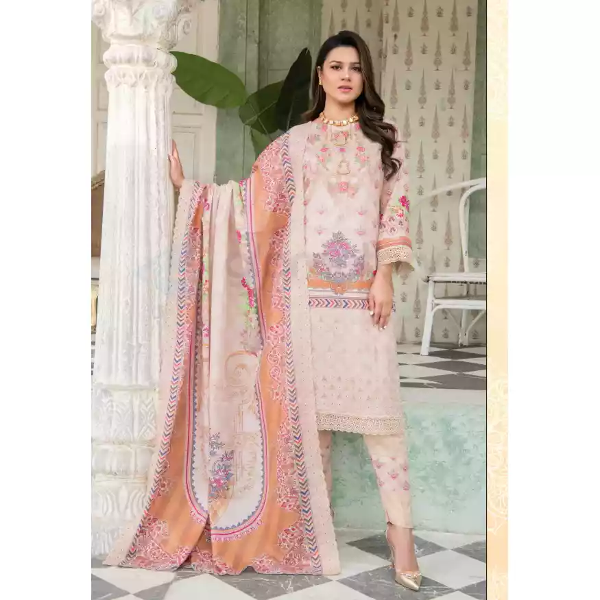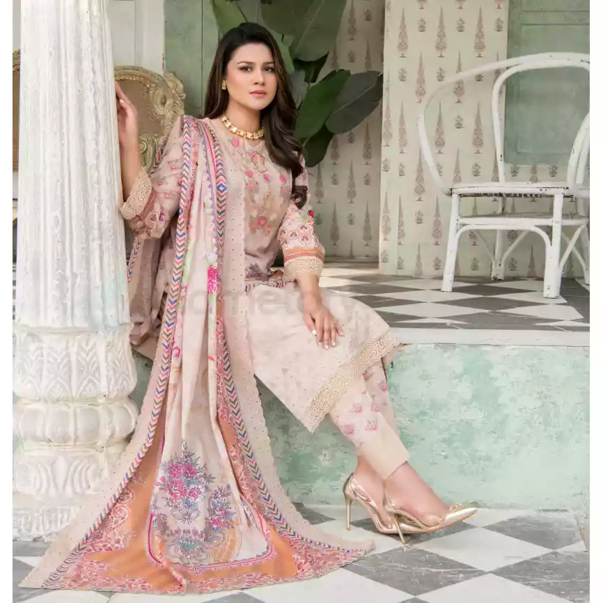 Pakistani Luxury Printed Embroidered Stripe Lawn with Jacquard Voil Dupatta-1027