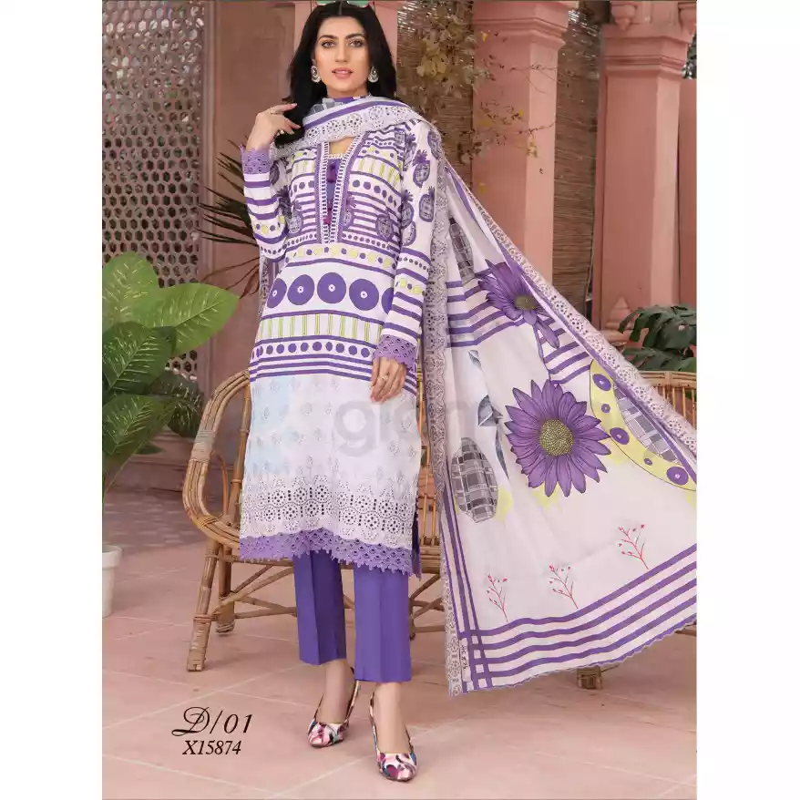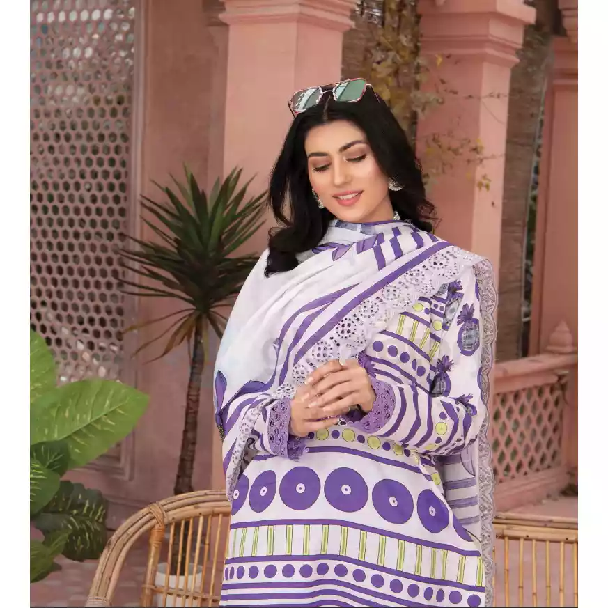 Pakistani Luxury Printed Embroidered Stripe Lawn with Jacquard Voil Dupatta-1031