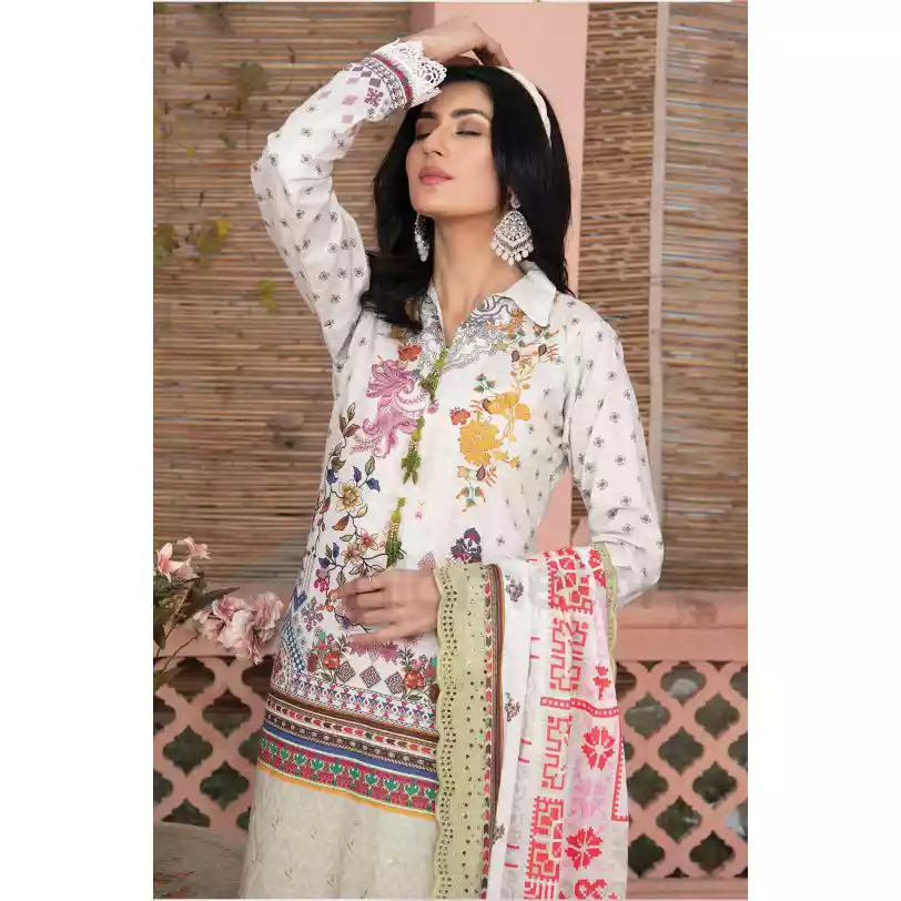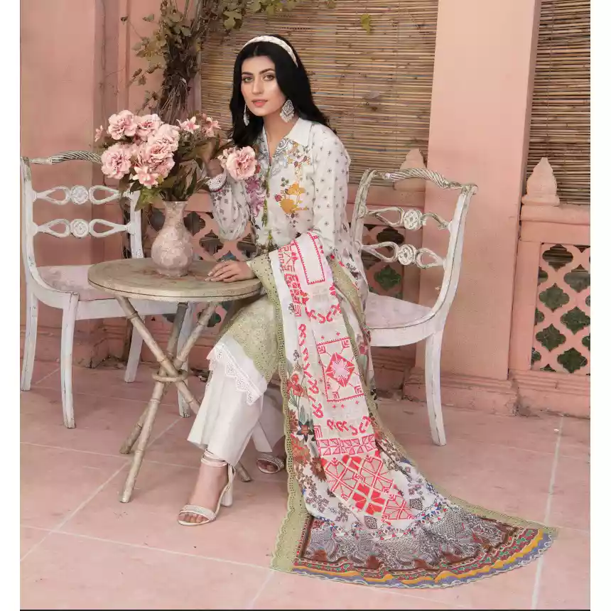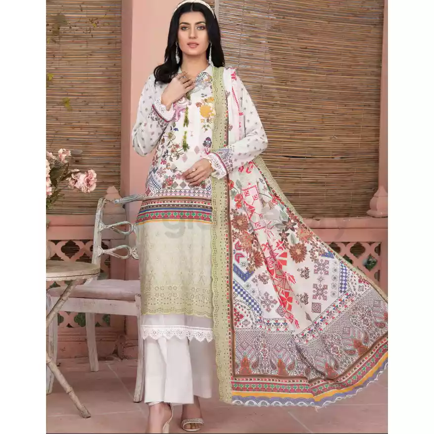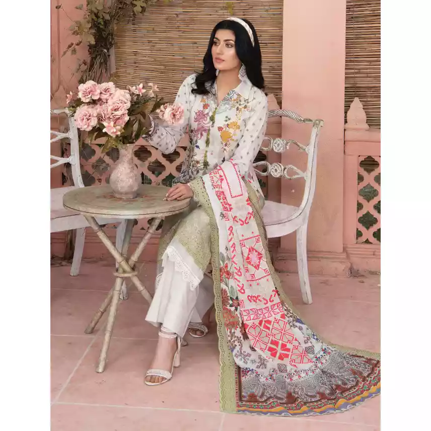 Pakistani Luxury Printed Embroidered Stripe Lawn with Jacquard Voil Dupatta-1033