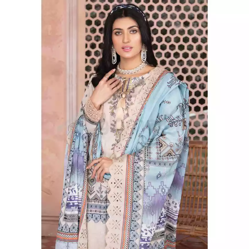 • Dupatta: Digital Printed Embroidered Cut-Work Voil Dupatta
