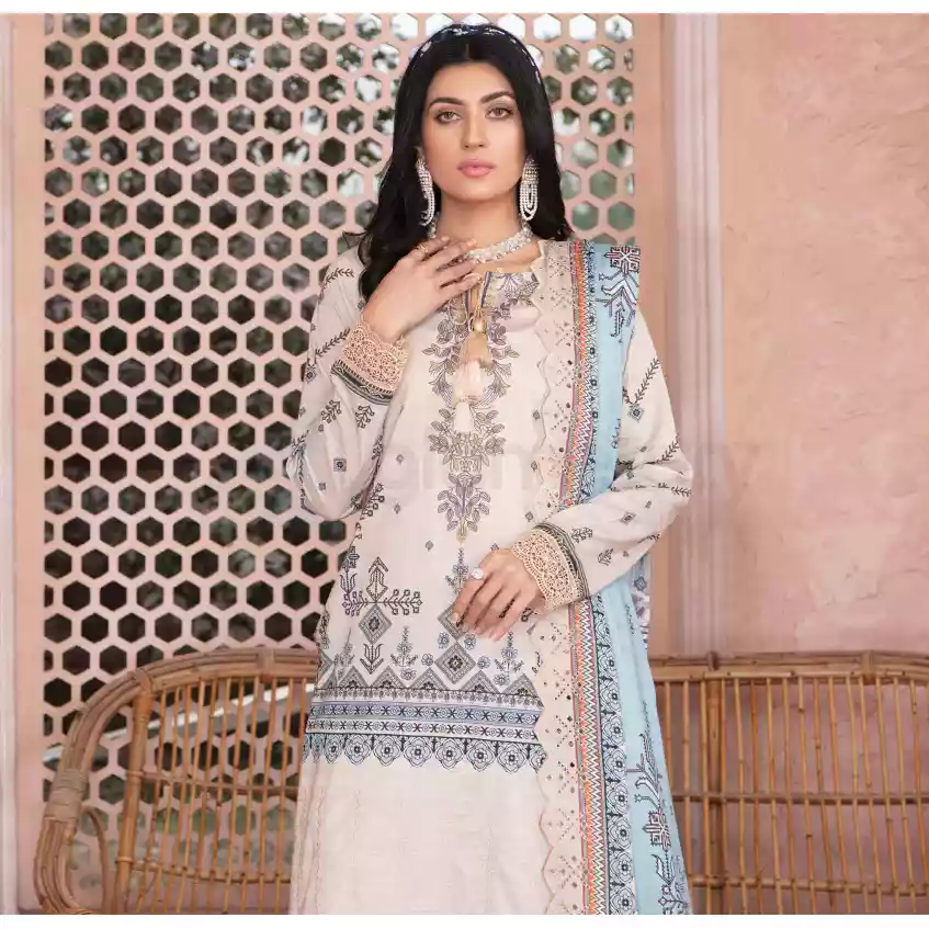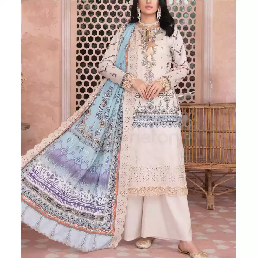 • Front Part: Luxury Digital Printed Embroidered Stripe Lawn with Cut-Work