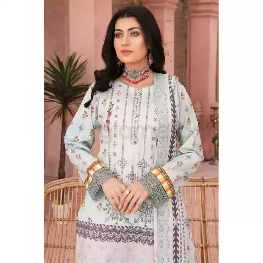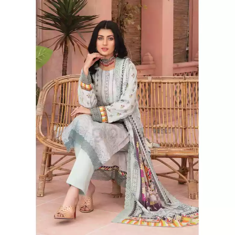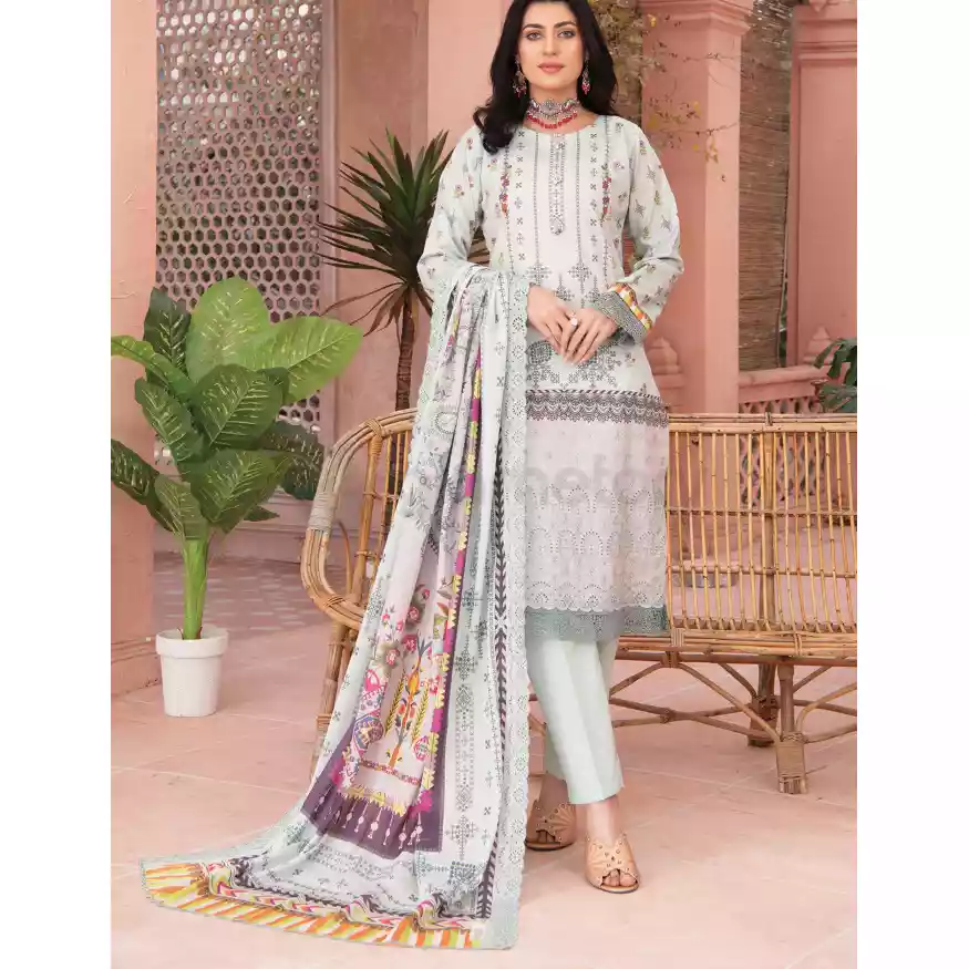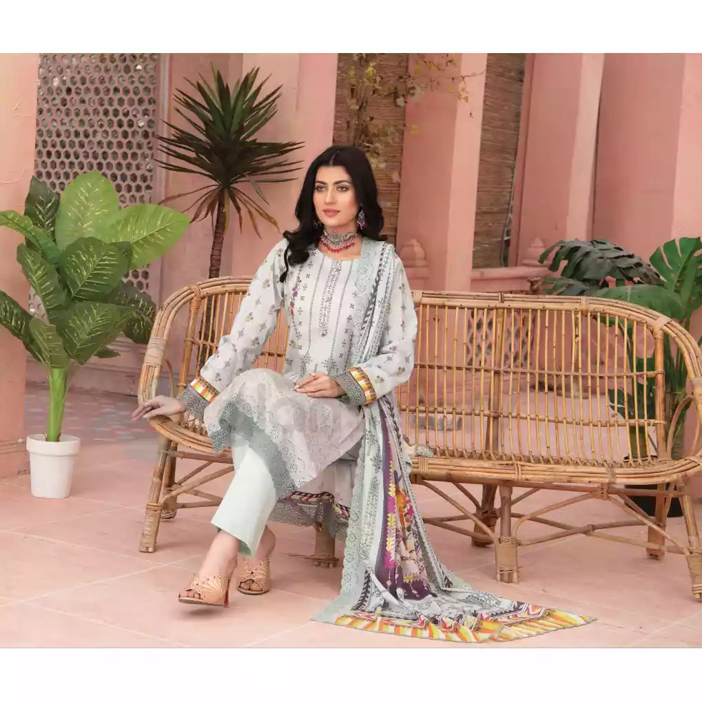 Pakistani Luxury Printed Embroidered Stripe Lawn with Jacquard Voil Dupatta-1040